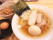 JR香芝駅前のラーメン屋さん。店内は厨房に面したカウンターと壁に面したカウンター席。添加物不使用の醤油を使った…